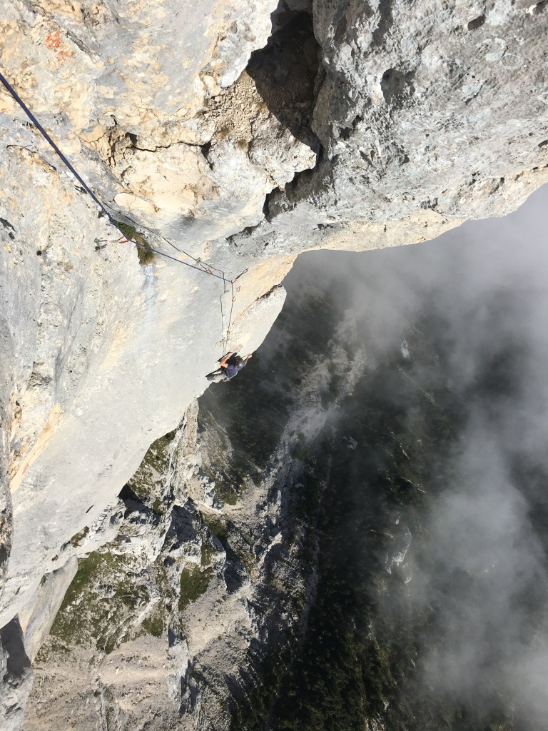 Encore quelques petites prises qui cassent ou qui croustillent, mais les passages devraient y remédier. Du caillou très classe sur plusieurs sections. La voie mérite largement une visite au même titre que les autres de la face est, et d un point de vue difficulté ça peut se voir comme 7b max et 2×2 point d aide dans les deux longueurs clé.