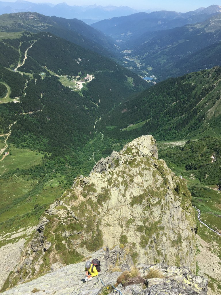 Le cadre est magnifique avec le cirque de la belle étoile et les fleurs à l’approche, le parcours propose de belles longueurs ainsi qu’une sortie sur une arête aérienne qui a du chien ! contrairement au dernier commentaire sur Camptocamp, j’ai trouvé un équipement en place intelligent avec des goujons là où on ne peut pas placer de concert.