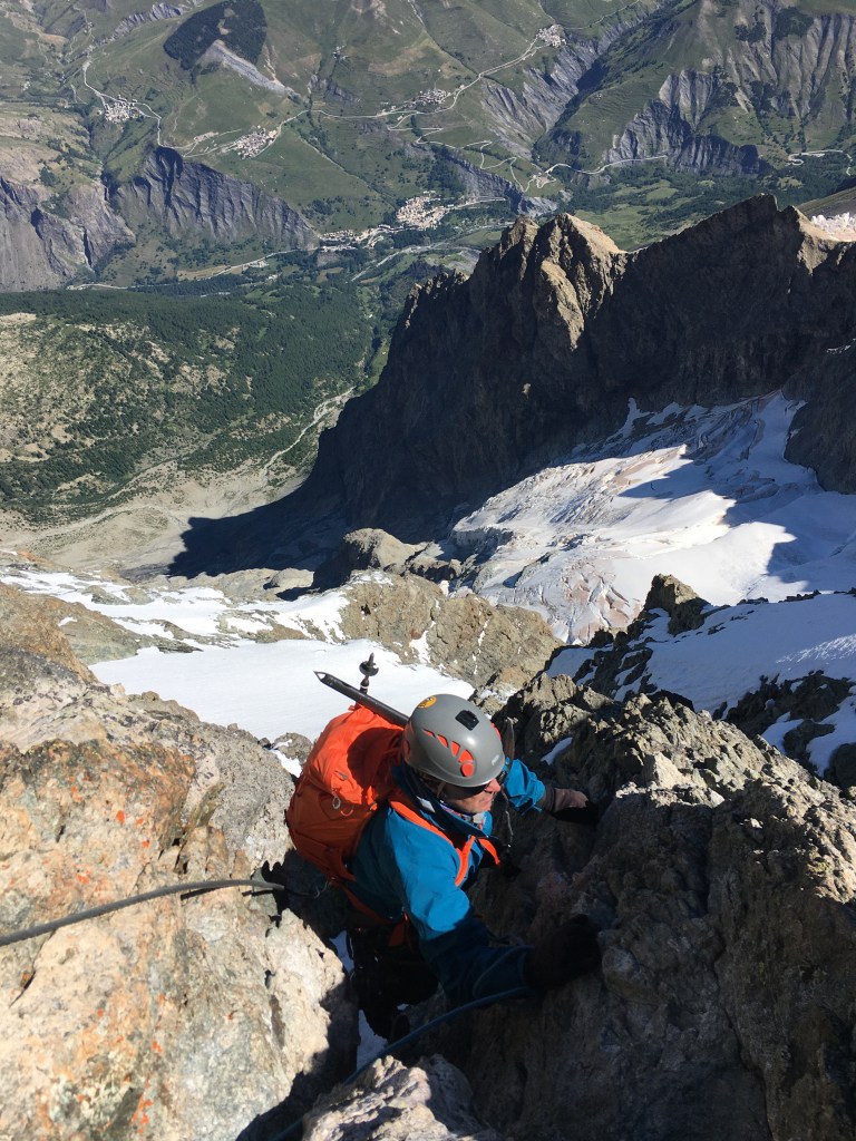 Nous avions eu le plaisir de faire arête de la convention la veille ce qui a permis de s approprier le bon Rocher de la meije et de finaliser l’acclimatation tout en profitant de l’après-midi de repos. E