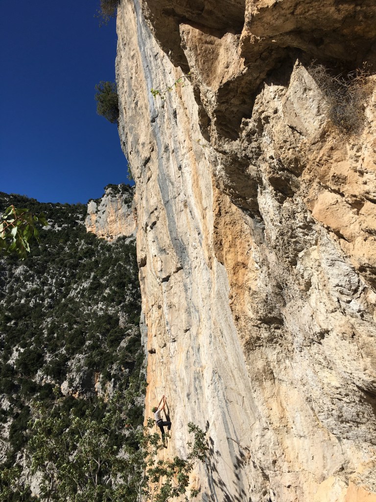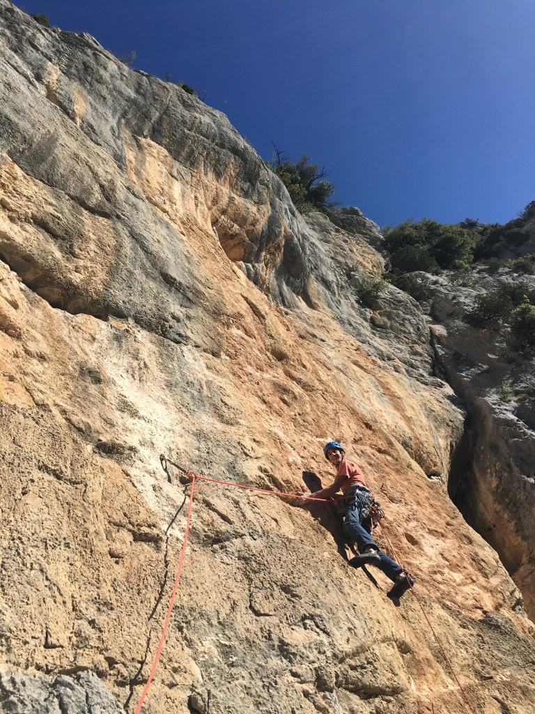 La peur de prendre un megavol déjà, la pression du dernier petit ressaut -bien cul- apres avoir enchaîné tout le début. Puis le plaisir d appartenance à cette équipe de 4, qui a bien besoin d une sérieuse troutherapie 😂. … et qui doute et subit un peu sur cette voie exigeante, du pur Mussat´! C est la joie de découvrir des longueurs toutes plus majeures les unes que les autres! Le bonheur aussi de se délecter du Sud alors que la morosité de l automne à débuté plus au Nord. La forêt d un mélange entre feuillus et pins présente un magnifique camaïeu vert-orange, dont on profite depuis la paroi. « Et tu as vu ce joli petit pont romain au pied d Aiglun? Imagine les anciens qui allaient au champs sur les restanques de l autre rive… ».