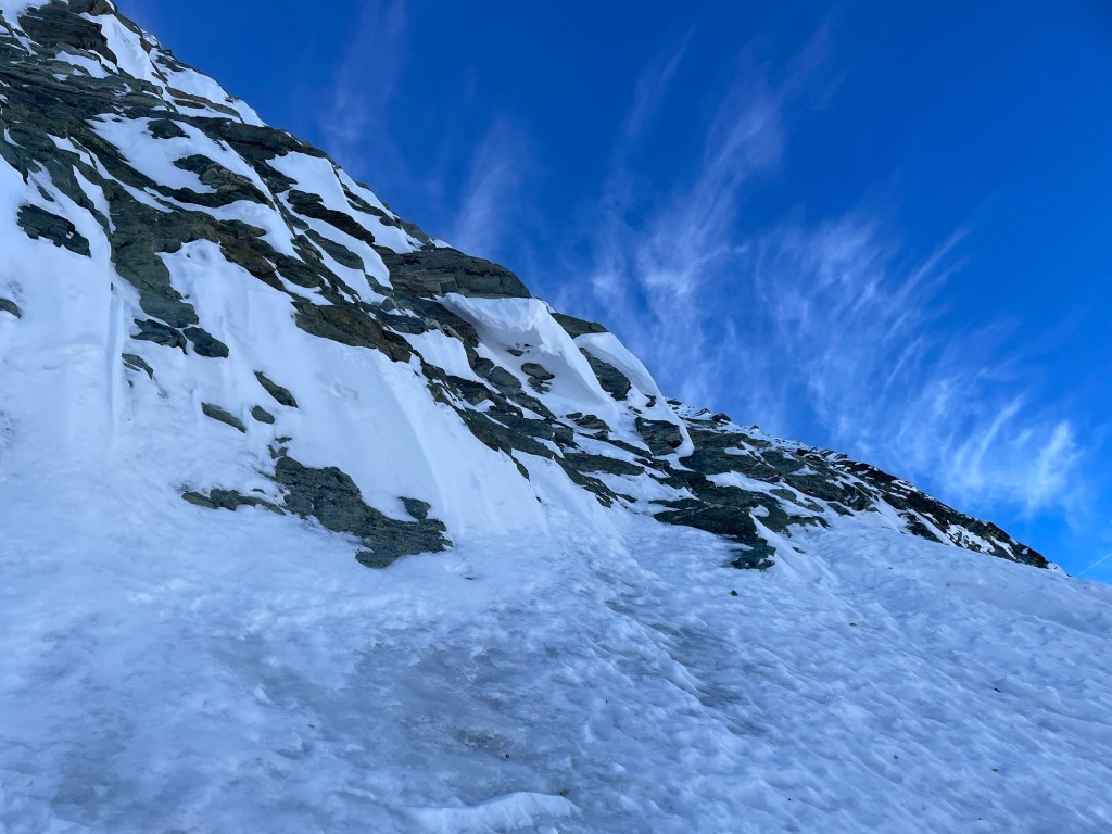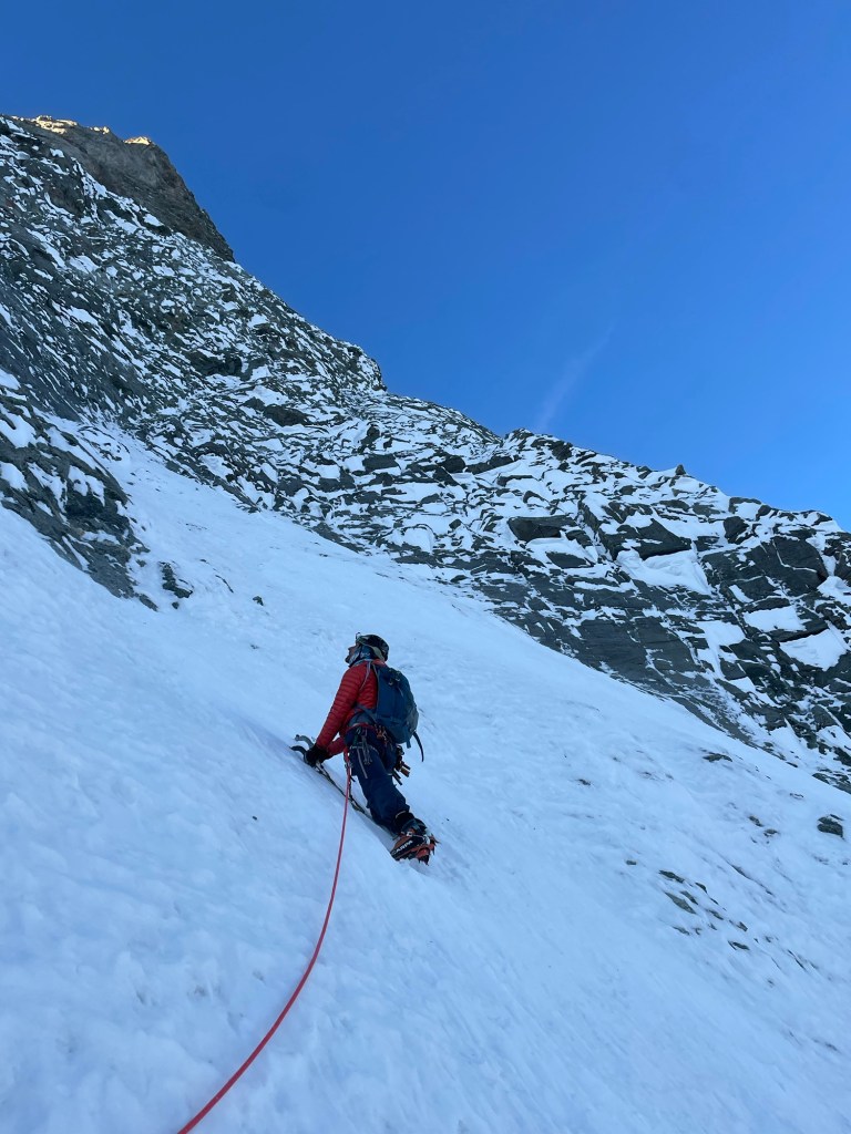 Un glacier tracĂ© mais les traces reviennent sur leurs pasâŠun alpiniste tombe dans la rimaye de nuit Ă cĂŽtĂ© de moi, sans consĂ©quence heureusement! ⊠un dĂ©but dĂ©licat⊠puis de la corde tendue malgrĂ© la peuf Ă dĂ©blayer⊠de la glace raide et cassante, on entend son cĆur Ă cette altitude!âŠ.une sortie en mode natation, peuf sur caillou⊠un repos au soleil sur lâArĂȘte de zmutt en Ă©coutant le rĂ©chaud qui ronronne⊠un secours en pleine face le soir pour nos compĂšres ⊠on rallume les frontales Ă lâĂ©paule pour trouver Solvay notre havre pour la nuit, ouf!