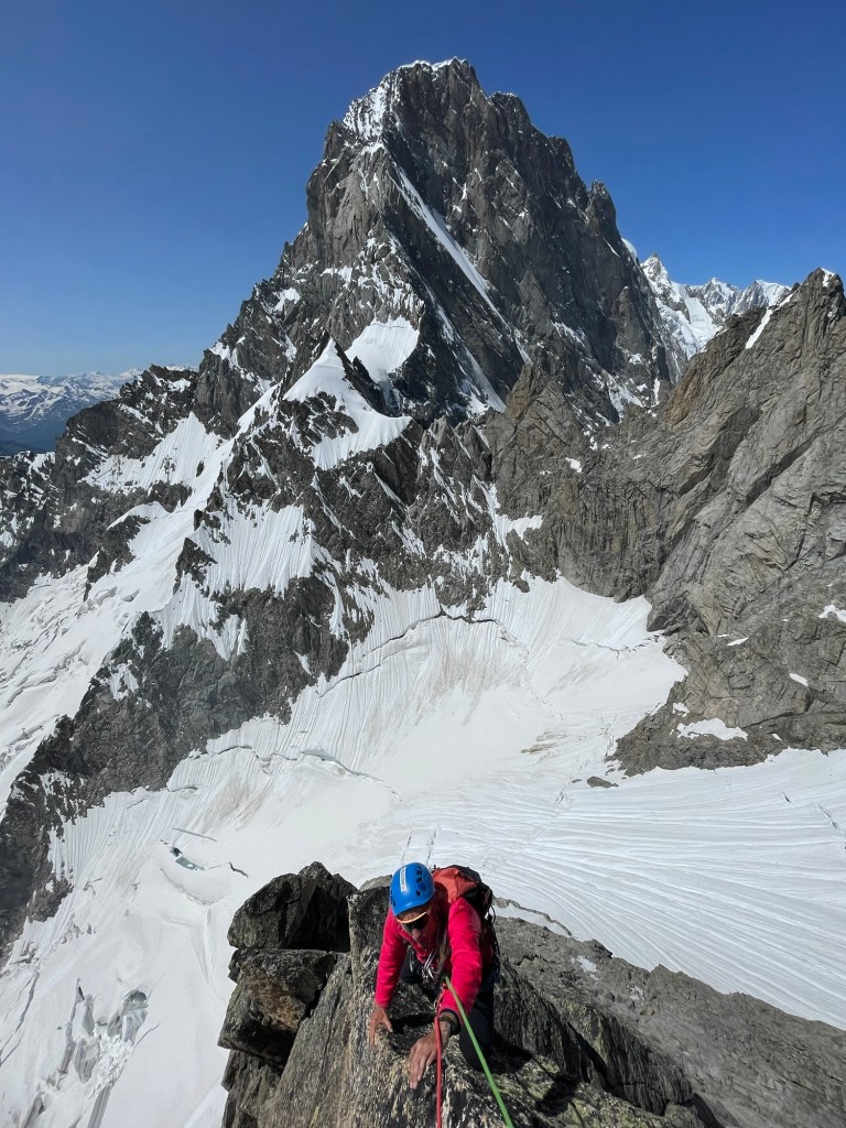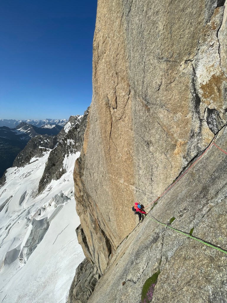 C’est après une jolie course à l’envers des Aiguilles que Florence s’est laissée séduire par le versant italien du Mont-Blanc… Malgré la compacité et la longueur de la face, Florence ne s’est pas laissée impressionner et a pu savourer cette belle escalade plaisir, dans un coin loin des remontées mécaniques et dans un environnement magnifique ! Bravo!
