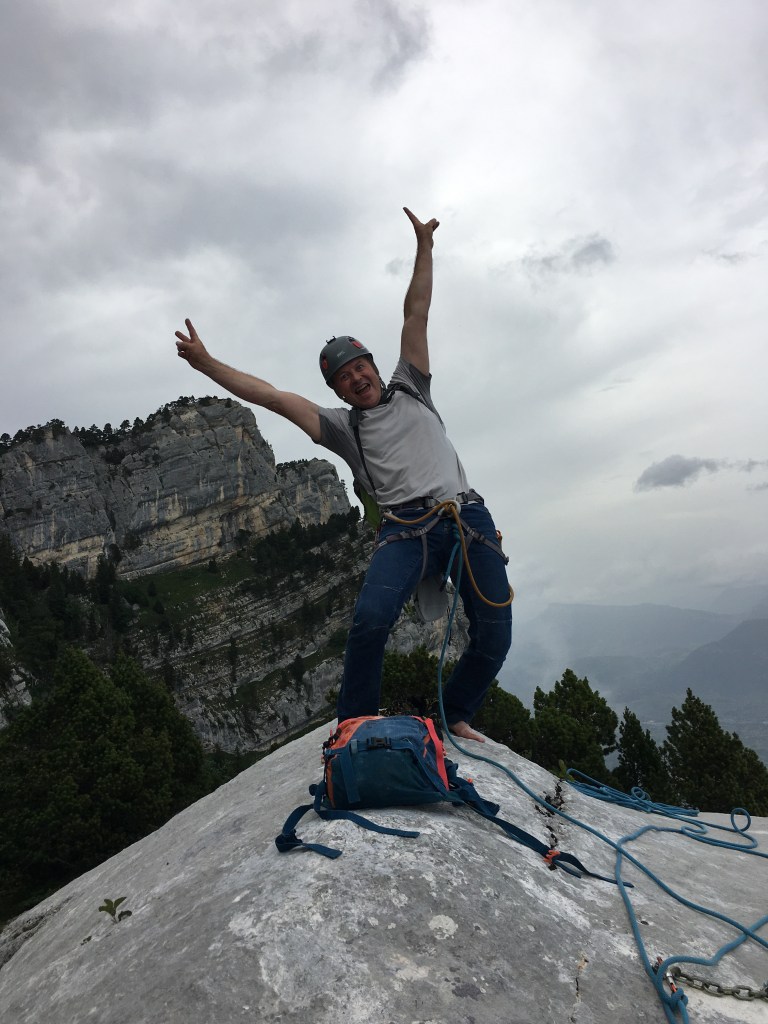 Et c est grâce à un beau boulot d équipe que nous redescendons au sol avec les trois premières longueurs enchaînées pour Christophe et moi. Cool!